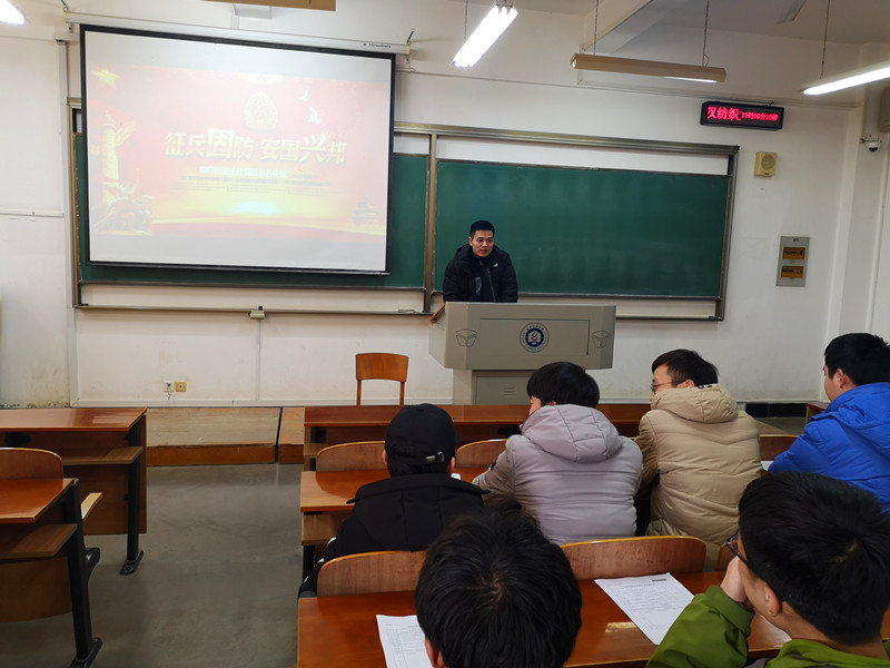 2月24日下午,ok138cn太阳集团5292019年大学生征兵政策宣讲会在3号教学楼111教室召开,学院全体男生均参加会议。本次宣讲会特邀学院2017级学生、退伍军人于天伦进行军旅生活分享。宣讲会由辅导员阎浩老师主持。