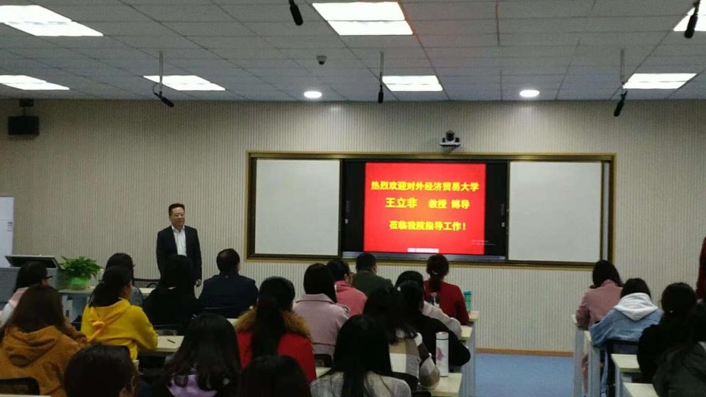 11月14日上午,对外经济贸易大学教授、博士生导师、全国高校商务英语专业教学协作组组长王立非教授受邀来我院做了题为“商务英语专业国标实施方案要求与专业质量提升”的学术报告,指导我院商务英语专业建设。讲座由胡中原书记主持,学院领导班子、商务英语骨干教师及商务英语专业全体学生参与了此次讲座。