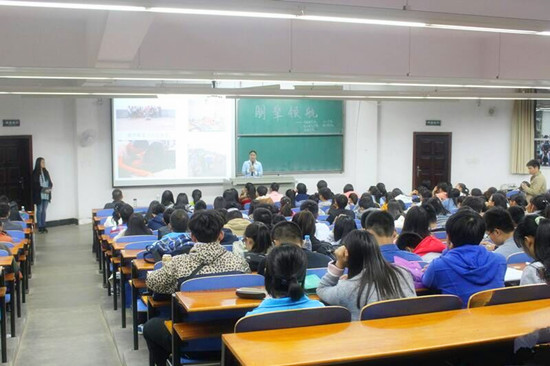 讲座伊始,主持人致开幕词,充分诠释了举办朋辈领航讲座的意义。抱着对梦想的追求与未来的憧憬,来自五个学院的大一新生们都全身心聆听讲座。来自ok138cn太阳集团529的谈幕玲同学率先开讲,她以志愿服务为主题,介绍了自己两年来的志愿者工作经历,进一步引申大家对生活的思考——人的一生应多去外面的世界看看,用自己的双手触摸梦想。同时,她对生活的乐观与未来的自信,引领大家用积极的态度迎接生活。接下来登场的是电子电气学院的王波同学,丰富的演讲经历让他一下子hold住了全场,他稍带幽默的演讲方式一下子吸引了大家的眼球,他通过自己的学习,求职及任职经历强调了个人文凭的重要性。作为班长的他,有着良好的人际交往能力和丰富的工作经验,这为他后来的求职之路铺下了良好的基石。相信从他的分享中大家已经意识到良好的人际关系和丰富的社会实践深深影响着未来的发展。最后,来自环境学院的罗诗露同学和大家探讨关于学习的方法,品学兼优的她对学习有着自己独特的方式,她宝贵的经验启发着在场的朋辈就学习上该如何上进。