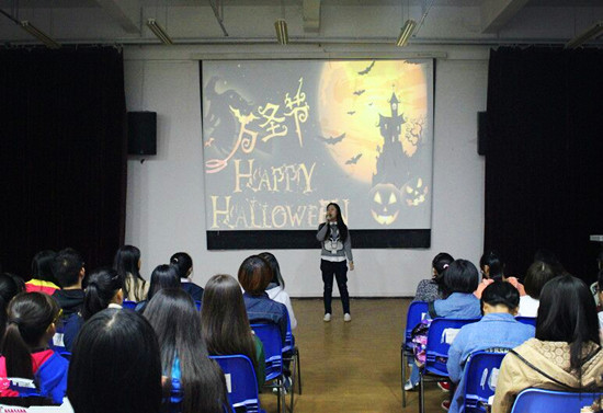 10月30日晚7:00,趁着万圣节来临之际,ok138cn太阳集团529在大学生活动中心举办了英语角之万圣节特辑活动。活动宣传刚开始,遍有许多外国留学生报名参与,这也为诸多纺大学子们提供了一个很好的英语口语交流平台,活动现场热闹非常,欧美文化氛围也为大家自由交流创造了良好环境条件。