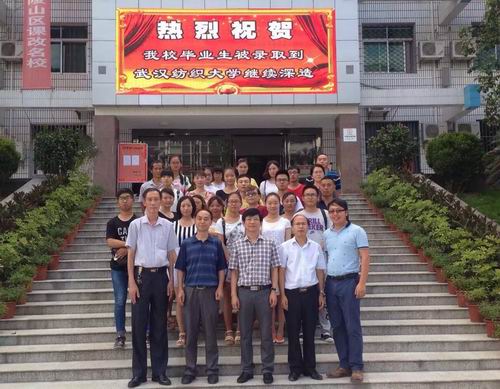 院长何畏、院党委书记陈利民一行与恩施市一中校领导以及2015级新生、新生家长合影留念