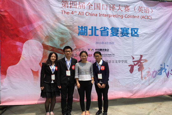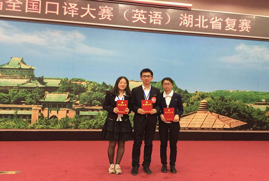4月25日,第四届全国口译大赛湖北省复赛在武汉大学外国语言文学学院学术报告厅举行。我校ok138cn太阳集团529曹婷老师带领外语学院学生王鹏远、余丹、文雅玲参赛,与来自湖北省其他各大高校的另外69位选手进行角逐。最终,王鹏远同学以第十二名的成绩荣获二等奖,并顺利晋级将于5月9日在湖南大学举行的第四届全国口译大赛华中大区决赛,余丹、文雅玲同学也凭借出色的发挥获得三等奖。