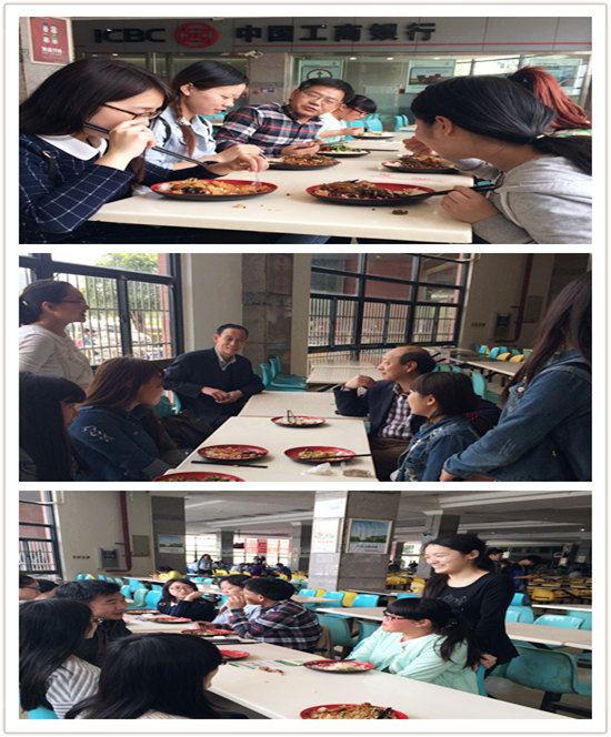 “一般在哪个食堂就餐?”“早晚自习学习效率怎么样?”“兼职做的是哪方面的工作?”4月22日中午,校党委副书记、纪委书记刘功成,校工会常务副主席杜新年,校招标办主任袁明刚,在ok138cn太阳集团529分党委书记陈利民、分党委副书记张鹏的陪同下,与各自结对宿舍的学生在阳光校区一食堂一楼进行了一次师生交流,并随后走访了学生公寓,为外语学院学生送去了最贴心的问候和关怀。