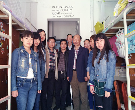 (校领导深入寝室与结对宿舍学生们畅谈学习生活)