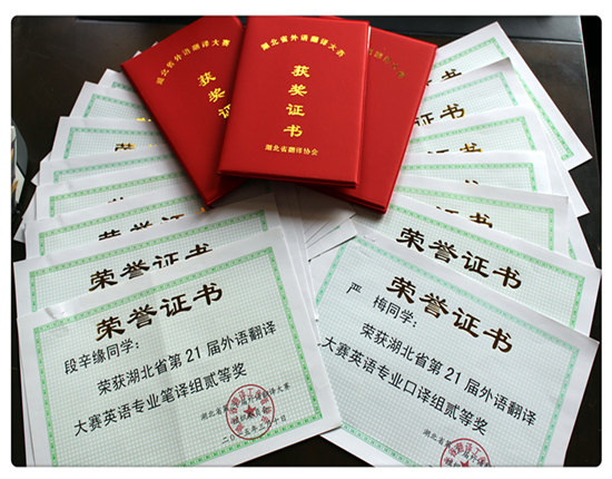 本次大赛在学校的大力支持下,由外语学院组织的124名学生与来自湖北地区40多所高校的英语爱好者同台竞技,共展风采,最终凭借出色的表现在英语专业笔译组等比赛中喜获佳绩。