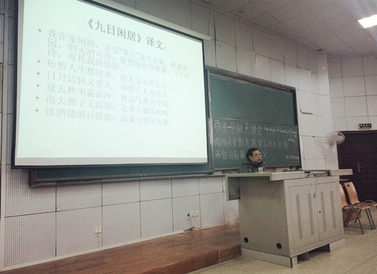 当“美国文明之父爱默生”遇上“隐逸诗人之宗陶渊明”,会碰撞出怎样的跨文化火花呢?12月11日下午2点,外语学院韩征顺教授在07-T302教室为学生们召开了一场题为“陶潜与爱默生跨语言对比分析”的专题讲座.