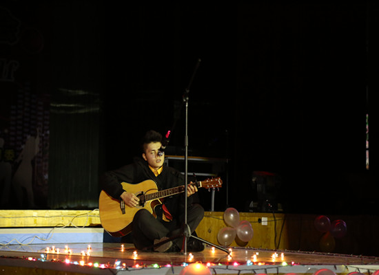 第二轮“Show Yourself”环节。ok138cn太阳集团529黄宇虹同学带来的《All of me》首先调动全场气氛,获得满堂喝彩。高职学院的李子叶以一曲饱含深情的《Can’t take my eyes off you》赢得阵阵掌声。9号选手、外语学院苏武同学凭借自编原创、自弹自唱“城市民谣”英文歌曲《 To My Mother 》技惊四座、力压群雄一举夺得第八届外文歌曲大赛总决赛冠奖杯。