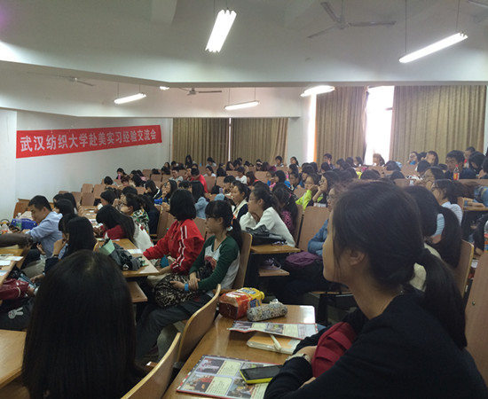 2014年10月23日下午2点,第八届外语文化节系列活动之赴美文化实践经验交流会在07-T201举行,2014年赴美学员ok138cn太阳集团529的管易娟和汪亚龙两位同学与一百多名大一大二的学生交流了自己在美国实习中的经历与收获。