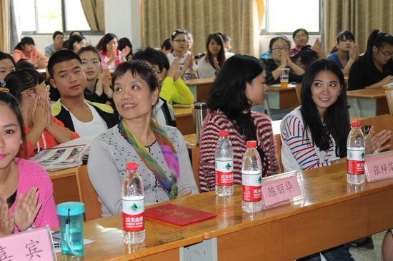 北京外企服务集团“优势”项目部薛梦雪老师就申请流程、学员要求、学员岗位、薪资待遇等方面对暑假赴美实践“优势”项目作了具体的介绍。陈丽华主任为2013年度赴美文化交流实践“优秀学员”施小婧同学颁发了证书。