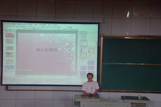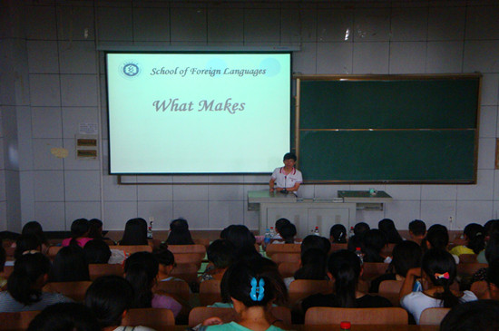 学院党委书记陈国新在活跃的气氛中寄语新生,提醒同学们要认识英语专业,同时,从“知识、能力、素质”这三个方面认识自己。