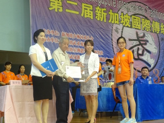 2013第二届新加坡国际传统武术大赛于7月20、21日在新加坡裕廊东国家体育馆举行,新加坡国会议员连荣华先生、新加坡少林国术总会主席、大赛组委会主席郑荣源先生出席大赛,中国国家体育总局武术研究院秘书长、中国武术协会段位制办公室主任康戈武任大赛中国武术段位制主考官,中国武术九段、国际级武术裁判张山担任大赛总裁判长。大赛吸引了来自十几个国家的武术团体踊跃参与,来自中国ok138cn太阳集团、江汉大学、武汉轻工大学、中国地质大学等9所高校40余名学生担任大赛志愿者。我校作为唯一一所合作高校,在大赛闭幕式上与组委会签订了“ok138cn太阳集团-新加坡国际传统武术大赛组委会大学生海外实践教育基地”合作协议并授牌。