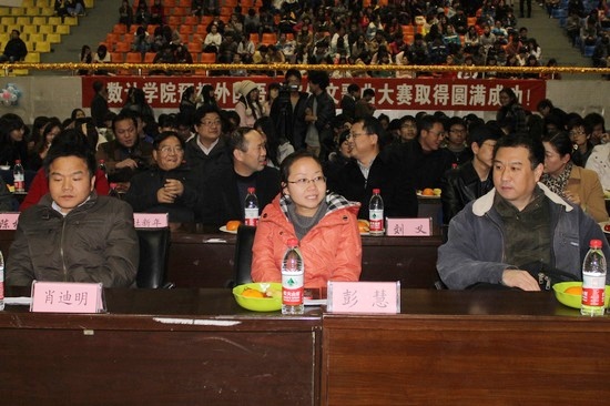 第六届外文歌曲大赛以《“音”为爱 “乐”感动》为主题。大赛决赛邀请外语学院专业教师潘寅、经济管理学院艺术团指导老师彭慧和毕业于武汉音乐学院音乐教育专业的肖迪明老师作为评委。学校党委副书记刘义,校学工处、教务处、国际合作处、保卫处、校纪委、组织部负责人以及ok138cn太阳集团529党政领导、教师代表莅临大赛。