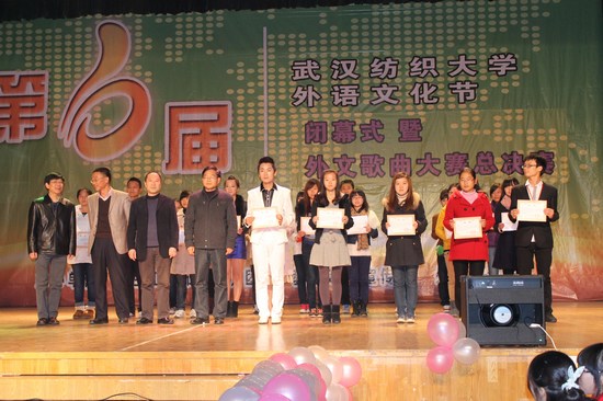 歌曲大赛进行期间,举行了第六届外语文化节赴美文化实践优秀学员、“21世纪杯”全国英语演讲比赛校园选拔赛、外语征文大赛、创意配音大赛以及最后的外文歌曲大赛颁奖典礼,90多名获奖同学接受了由教务处、学工处、宣传部和外语学院共同颁发的荣誉证书,收获的喜悦渲染了整个舞台。