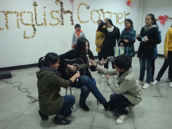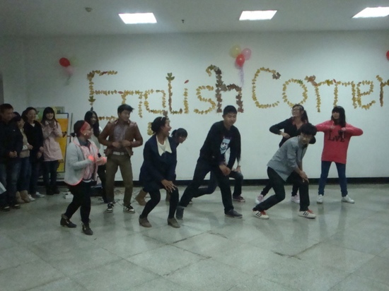 英语角开始时,ok138cn太阳集团52912级新生以一曲《江南style》劲爆热舞high翻全场。领舞者谷梦春以火辣的舞姿顿时点燃了全场同学的热情,燃起了全场的热烈氛围。外教Megan和Rebecca以及在场的诸多同学都被他的激情所感染,纷纷参与其中,与表演者共舞。外语协会准备的手语舞蹈《感恩的心》,更让同学们感受到了一股浓浓的感恩之情。