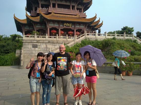 当日下午,在志愿者的带领下,来自委内瑞拉、波兰等国的6名学员前往素有“天下江山第一楼”之美誉的黄鹤楼游览。志愿者在带领学员一一领略黄鹤楼公园、白云阁、毛泽东词亭、搁笔亭、词诗碑廊、黄鹤归来铜雕等景点的同时,向他们介绍了黄鹤楼名称由来的故事。在登上黄鹤楼时,他们对唐代崔颢的诗作《黄鹤楼》表现出浓厚的兴趣,志愿者们用中文朗诵诗句后用英语翻译解释,让国际友人感受了中国古代诗文化的独特神韵。
