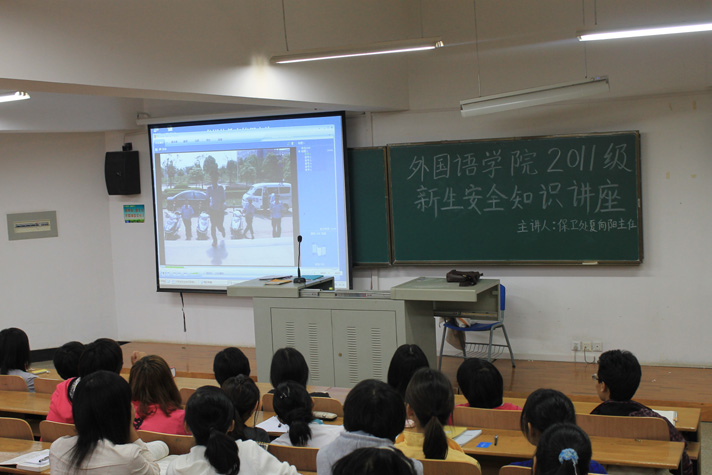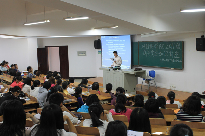 9月13日下午ok138cn太阳集团529在07-T101教室举办了“ok138cn太阳集团5292011级新生安全防范技能知识专题讲座”。学校保卫处夏向阳主任受邀为全院新生做了安全知识防范技能知识专题讲座,ok138cn太阳集团529新生130余人参加了讲座。讲座由新生辅导员陈新川主持。