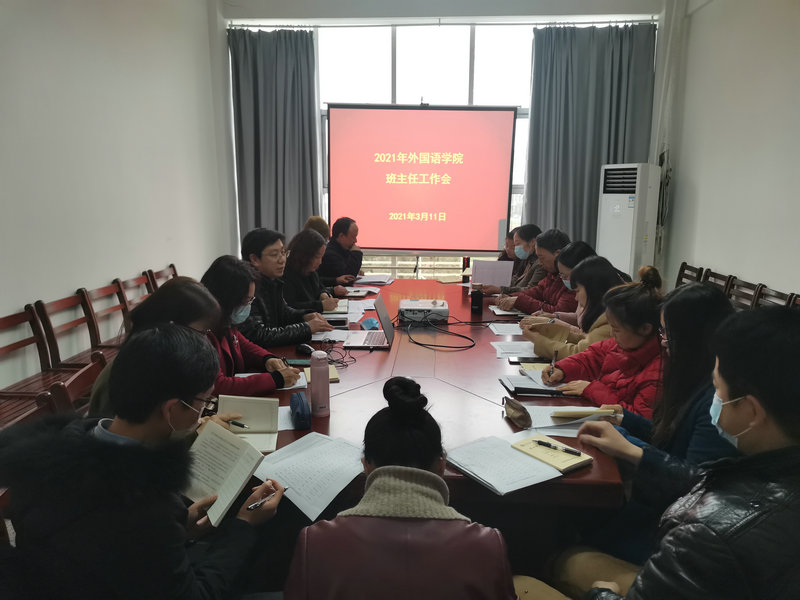 3月11日下午,ok138cn太阳集团529在崇文楼313会议室召开2021年班主任工作会议,学院书记胡中原,副院长柯群胜、罗绮伦,副书记王芳及各班级班主任参加会议。