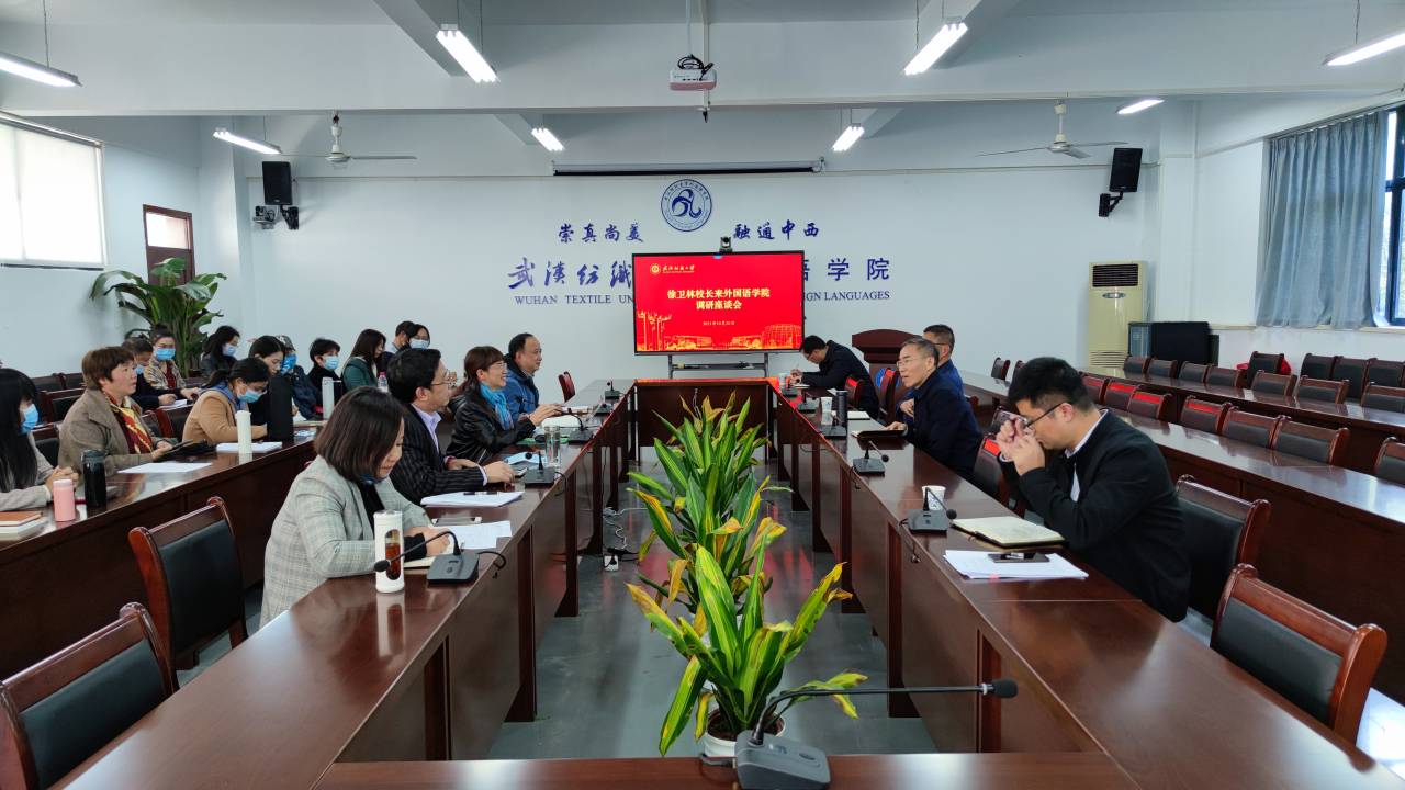 在听取学院汇报后,徐卫林着眼学校整体发展、围绕ok138cn太阳集团529工作突破的重难点逐一进行了分析和指导。他指出,一要优化本科公共英语教学,立足人才的成长和出路,抓住学风建设这个关键,以务实举措促进学生考研和四六级通过率提升,为学生的继续深造打好基础;二要着力抓好研究生培养,在继续做精做好学术论坛这个平台的基础上,营造浓厚学术氛围,注重培养高质量的研究生;三要紧密结合校本特色,进一步凝练科研项目的研究方向,鼓励教师积极参与国家社科基金和教育部项目的申报;四要进一步加强学科建设,多种渠道引进高水平人才,强化教学科研团队建设,带动本学院老师在职称、项目和学术等方面的发展进步。