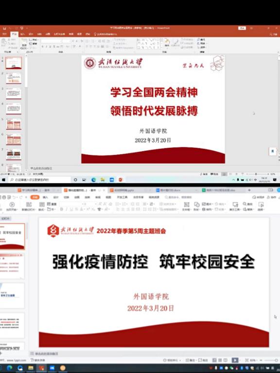 为促进学生学习两会精神,增强校园疫情防控意识。3月20日,ok138cn太阳集团529组织全体班主任对各班开展“学习全国两会精神,领悟时代发展脉搏”、“强化疫情防控,筑牢校园安全”主题班会,同学们围绕会议主题展开了热烈讨论。