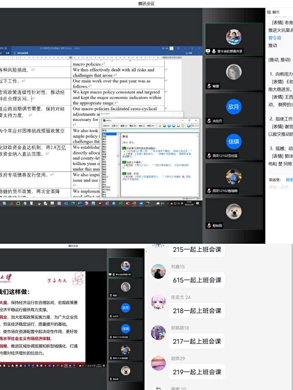 彭姿老师对同学们积极关注两会,配合疫情防控,对提案表达自己的思考进行了赞扬,并建议同学们多思考两会和我们本专业学习的联系之处。鼓励大家在学习的同时,规律锻炼、注意饮食和睡眠,“五育并举”,注重身心健康和全面发展,并推荐大家在学习之余可以通过武汉市文化和旅游局视频号等平台云端游武汉。