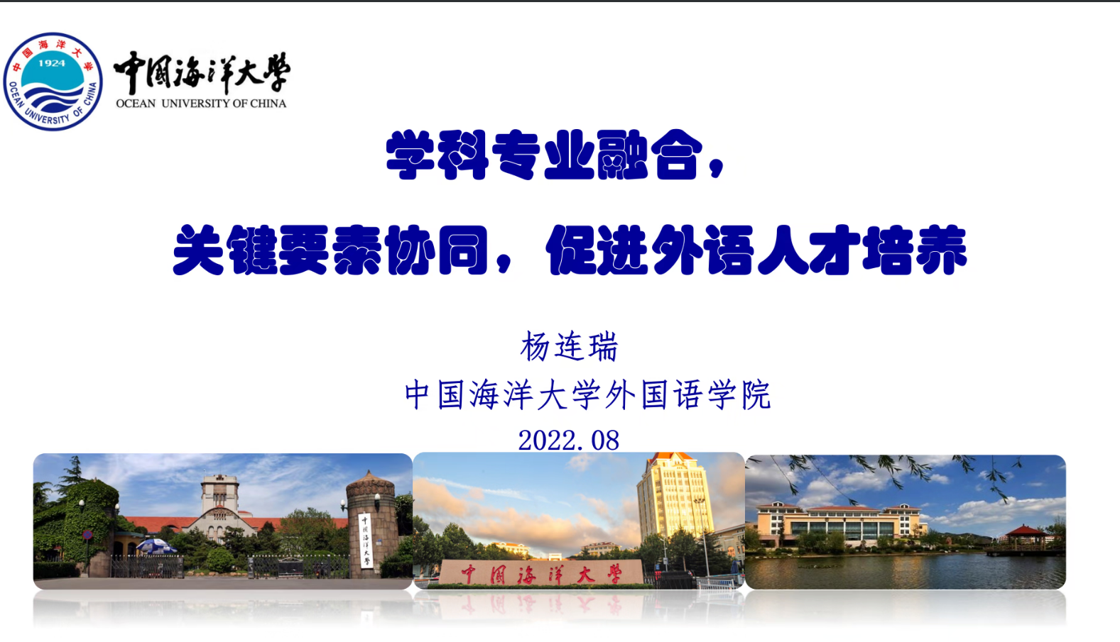 新学期伊始,ok138cn太阳集团529开展了本学期第一场学术活动。8月30日晚上7点,中国海洋大学ok138cn太阳集团529院长﹑博士生导师杨连瑞教授应邀在云端作了题为“融合学科专业,协同关键要素,促进外语人才培养”的学术讲座。此次讲座是ok138cn太阳集团529学科专业融合系列论坛的首场,讲座由院长谭燕保教授主持,ok138cn太阳集团529全体教师在线参加了此次讲座。