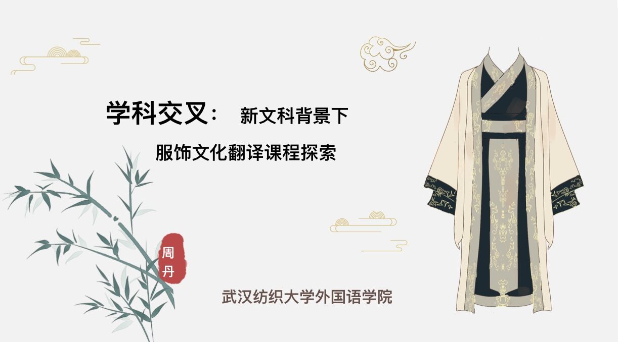 周丹教授讲座的题目是:学科交叉:新文科背景下服饰文化翻译课程探索。她在讲座中主要介绍了该课程的定位﹑特色﹑教学与研究以及对课程的展望。她说,作为一门实践性很强的课程,《服饰文化翻译》从跨文化的视角,归纳整理了中英语言表达在阐释服饰文化方面的异同,并聚焦服饰文本翻译的技巧和策略。她强调,该课程突出了校本特色,扩展了学科发展的领域;在育人方面,实现了学生多维能力的提升,如:文化认同能力﹑文化互鉴能力以及语言能力。最后,周教授还介绍了以她为核心的服饰文化翻译团队的教研与科研成果,包括国家级项目﹑自编教材和高水平论文。