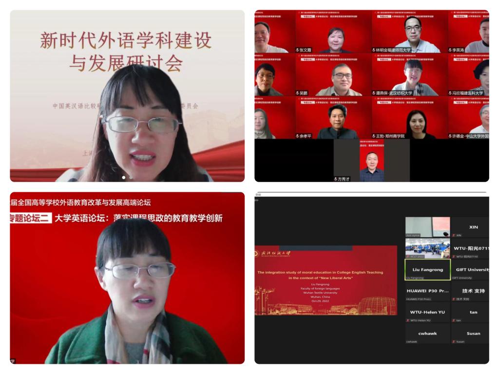 六、应邀参加国际、国内学术交流并做主旨报告或主旨发言10人次,学院教师学术影响力得到新彰显。3月,谭燕保在第六届全国高等学校外语教育改革与发展高端论坛做“英语教育中的国家意识和国际视野”主题报告;6月,谭燕保在新时代外语学科建设与发展研讨会做“社会服务的ok138cn太阳集团方案”专题报告;11月,谭燕保在第五届外语学科发展论坛暨新时代外语人才培养全国研讨会做“英语专业人才培养的整体性思维”主题报告;10月,刘方荣、吴志杰在2022国际语言教学跨学科会议分别做主旨报告;12月,陈芬在新世纪中国比较文学与世界文学发展新趋势研讨会做主旨发言。此外,积极推进各类虚拟教研室、学术共同体活动,其中与南开大学合作的 “赋权增能”虚拟教研室教研活动尤其活跃,教师在其公众号平台发稿8篇,很好地展示了我院专业特色及教师风采。