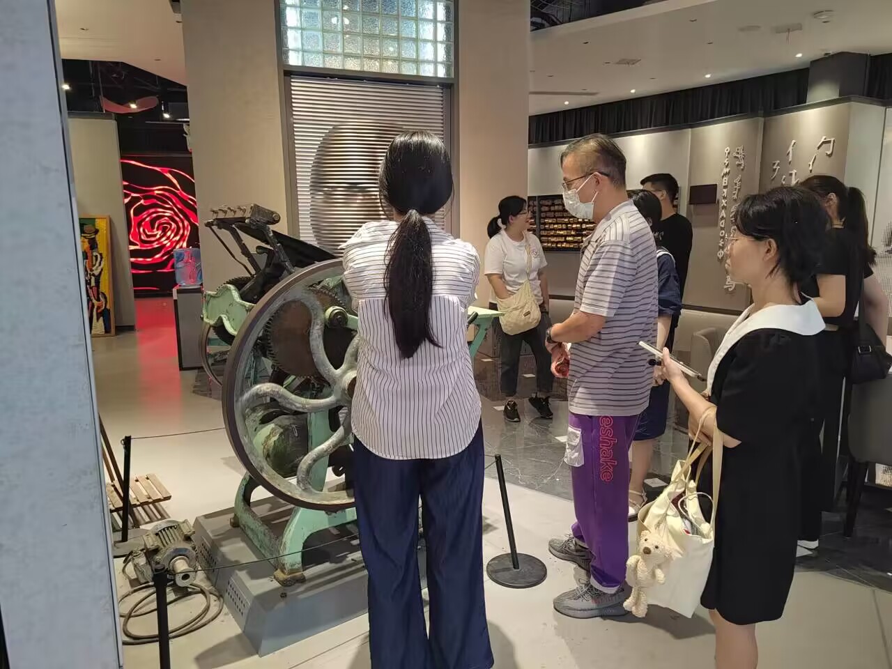 随后团队来到了江夏区字言纸语非遗馆。江夏城区纸坊以造纸而得名,随着时代的发展,现在手工造纸业几乎销声匿迹,但是它又以另外一种形式留存了下来,那就是该非遗馆。它完美再现了我国古代的造纸术。在这个科技飞速发展的时代,纸张书写逐渐减少,在这里,同学们感受古法造纸和活字印刷的古朴,感叹中华文明的智慧。
