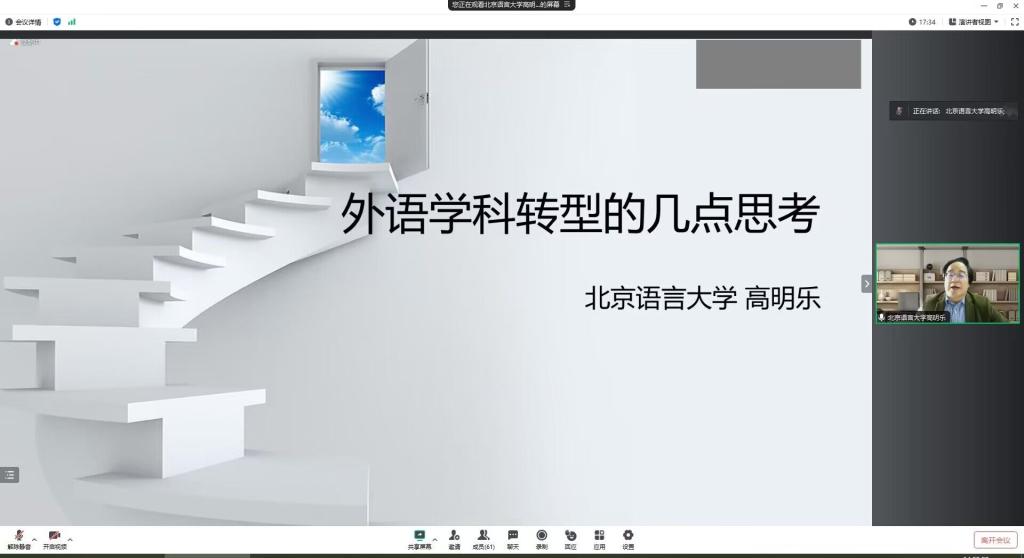寒意渐浓,但ok138cn太阳集团529的学习氛围却丝毫没有减弱。11月11日下午,学院邀请到北京语言大学外国语学部部长﹑博士生导师高明乐教授在云端为全院教师做了一场学术讲座,题目为:外语学科转型的几点思考。讲座由院长谭燕保教授主持。