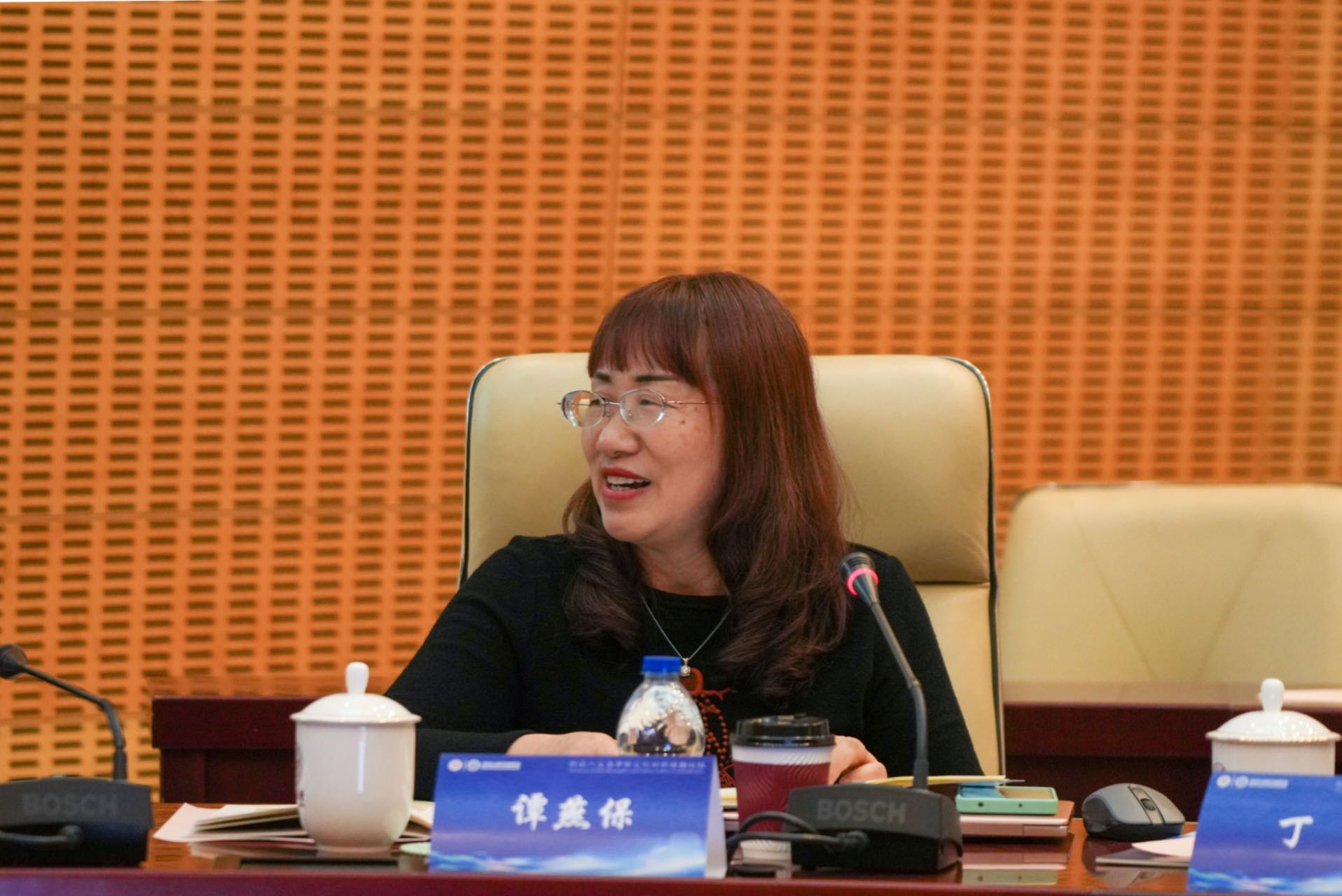 谭燕保教授首先追溯“叙事”的定义,指出叙事的广泛性:我们活在叙事中,我们要有叙事意识。叙事发端于修辞学研究,是对传播活动中的形式及其之所以被接受的分析。进而引用任东升教授和日本心理学者岸田秀关于“国家叙事”的定义和内涵,指出国家叙事有对内和对外两个向度:对内凝聚人心,赋予身份,国民认知,对外展示形象,获取认同。谭燕保教授以《理解当代中国英语读写教程》为例,指出教材汇聚了“习近平新时代中国特色社会主义思想”的十个重要方面,构成国家叙事的重要组成部分。为促动学生从“理解”到“讲述”,从自我走向他者,教师须以“故事思维”来解读并导写,并以“故事”的全球化语境、“故事”的历史事实性、“故事”的当下性、“故事”的人民性为载体,并引用该教材中的很多话题加以具体阐释。最后,谭燕保教授总结道,教材中的故事化叙事及教师的故事化叙事意识是教育履行国家叙事职能的重要表现,是国家意识的重要载体。谭燕保教授的发言受到与会院长及所有参会嘉宾的高度评价。