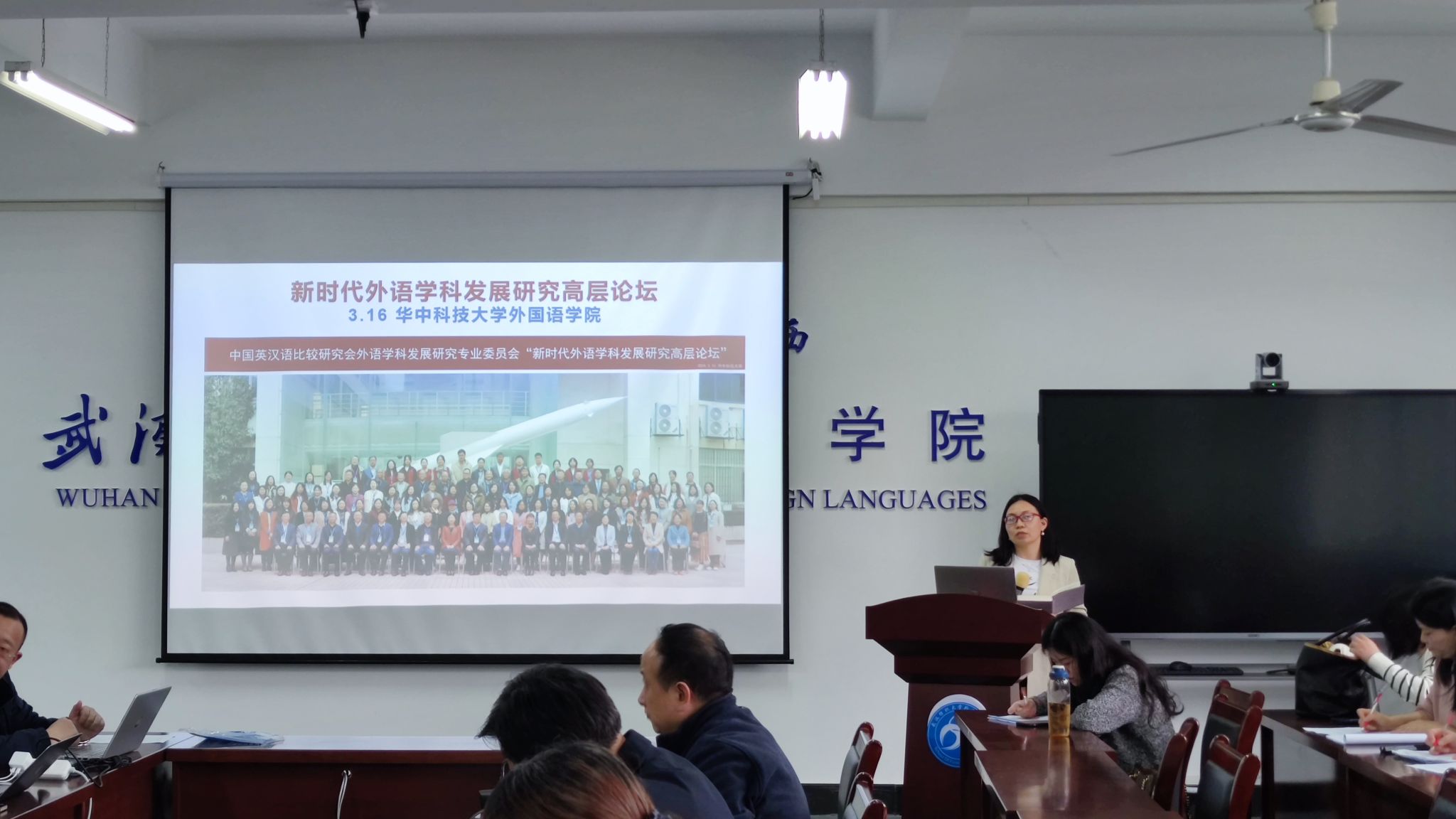 商务英语教研室主任吴志杰分享了她参加以“强国建设 外语何为”为主题的第八届全国高等学校外语教育改革与发展高端论坛的学习体会。本次论坛由北京外国语大学、教育部高等学校外国语言文学类专业教学指导委员会、教育部高等学校大学外语教学指导委员会和中国高等教育学会外语教学研究分会联合主办。高端论坛上,教育部高等教育司副司长武世兴强调了外语教育与“四新”有机融合的必要性、外语教育改革数字化的必然趋势,推动外语教育与人工智能双向互促的紧迫性。外语教学指导委员会的专家何莲珍、王文斌、李芒等强调了构建中国自主的外语人才培养体系和自主的应用语言学知识体系;拥抱人工智能、正确使用数字技术辅助教学的必要性。吴志杰结合专家们的发言,认为学院的专业建设要从教材变革、社会实践、数字化转型等角度进行发展,构建自主的外语人才培养体系。
