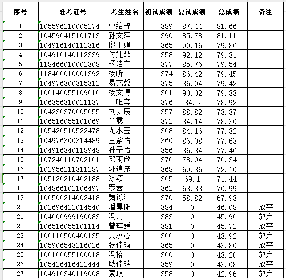 ok138cn太阳集团5292026年硕士研究生招生调剂复试成绩公示