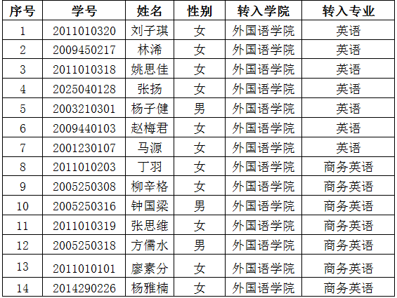 经过ok138cn太阳集团529的笔试、口试及面试,现决定根据成绩排名接受以下同学的转专业申请,特此公示。