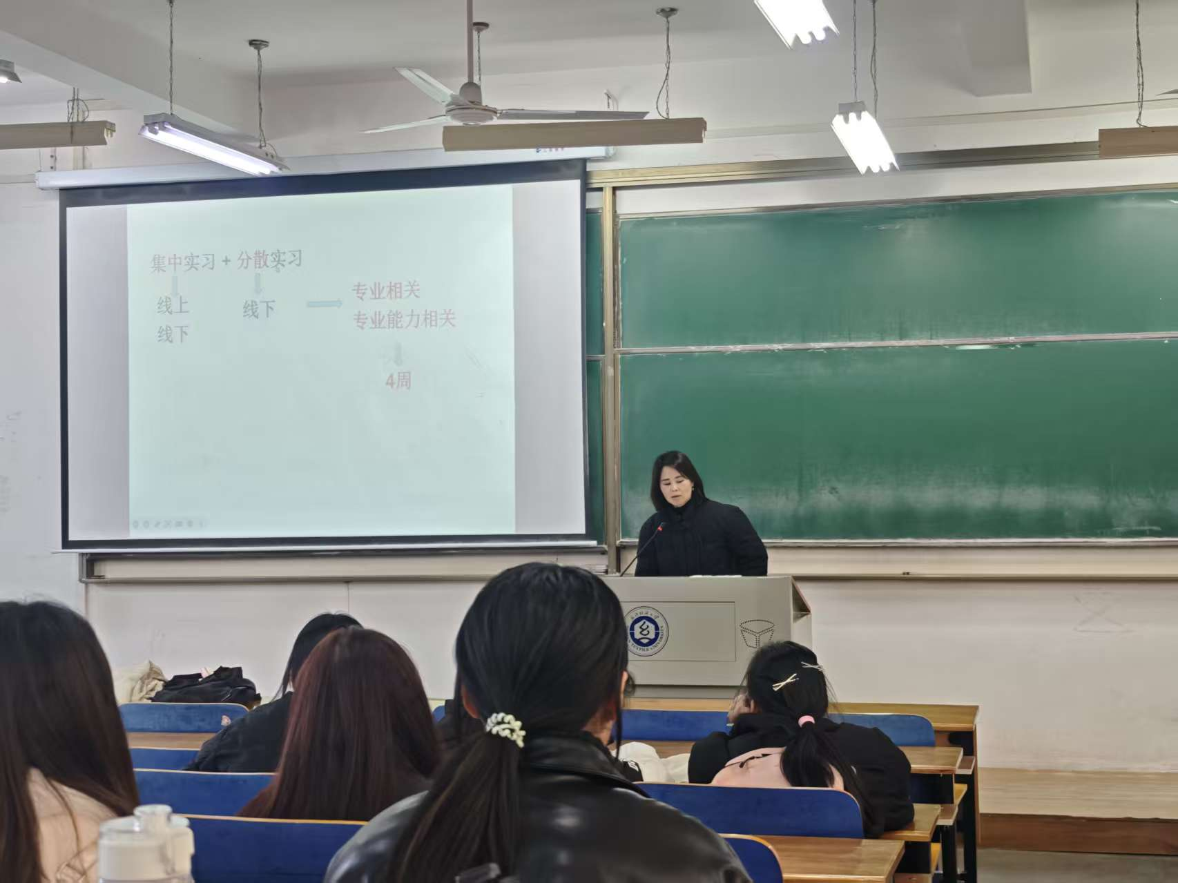随后,商务英语专业教研室主任吴志杰老师对毕业实习课程的教学安排与考核要求进行了详细解读。吴老师从实习目标、过程管理、成果提交及成绩评定等方面作了系统说明,要求学生将所学理论知识与实践相结合,在实习中培养职业素养与实际工作能力,并按时完成实习日志、总结报告等教学任务。