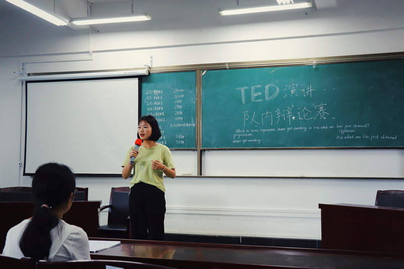 5月23日下午,纺大英语辩论社在阳光校区崇文楼303教室开展了第二次校园TED主题演讲和英语议会制辩论活动。本次活动由辩论社指导老师、ok138cn太阳集团529教师吴志杰担任活动指导,来自经济学院、管理学院、会计学院、数计学院以及ok138cn太阳集团529的学子们参加了此次活动。本次活动由辩论社成员、数计学院曹文广同学担任主持。