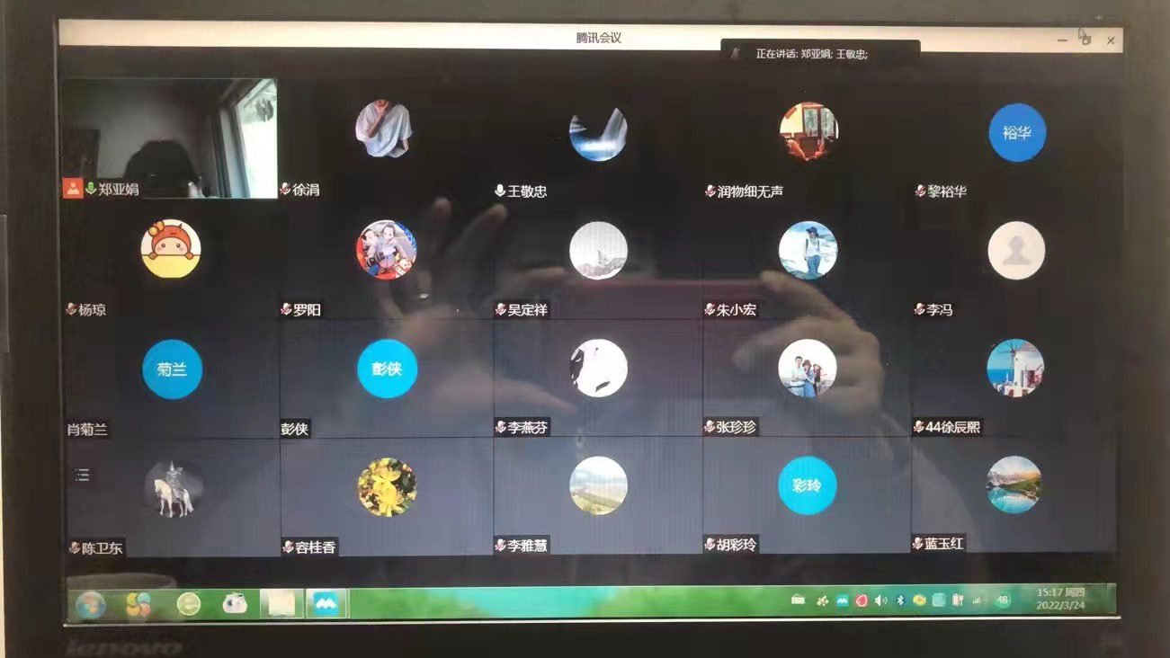 教研室主任郑亚娟主持分享会并率先发言,她从大学英语的工具性和人文性视角,提出要全面赋能大学英语,让大学英语赋能学生,大学英语应超越培养学生的语言能力,培养学生的多元能力。另外,她还以《新未来大学英语》综合教程为例,以提升学生的语言能力为中心,同时培养学生的跨文化交际能力和思辨能力;杨琼老师、李雅慧老师、容桂香老师、蓝玉红老师、朱小宏老师和肖菊兰老师都对思政课程应像盐溶于水这一说法发表了自己的看法,她们都认为课程思政需要与课程、与课本内容融合并渗透进大学英语教学,将中国的各种文化知识融入大学英语课堂;吴定祥老师对谭燕保院长的讲座“英语教育中的国家意识与国际视野”有着相当深刻的理解,他谈到大学英语教师应与时俱进,加强自我学习和专业知识的积累;黎裕华老师和张珍珍老师从学生的心理这一角度探讨了思政教育,她们谈到,在疫情期间,老师应该时刻关注学生的心理动态和情绪变化,在教学中多用鼓励的言语,让学生平稳的度过这一时期;童龄老师、李燕芬老师、胡彩玲老师、王敬忠老师、徐朝老师和罗阳老师结合自己的教学,谈到教育的终极目标是育人,学生首先应该身心健康,其次提高学习能力,端正学习态度,最后在学习的过程中掌握技能。老师应该根据学生的个性特点,帮助学生制定目标,最终让学生“to be a better person”。