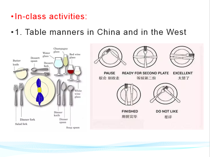 在整个教学设计中,李老师非常巧妙地、润物细无声地融入了大量课程思政元素,把中西方饮食传统和文化进行了对比,如西方汉堡和中国宫保鸡丁的制作方法,西餐和中餐的餐桌礼仪。最后在布置课后作业环节又选取了往年的四级翻译真题“介绍中国的团圆饭”,与该单元主题紧密相关。