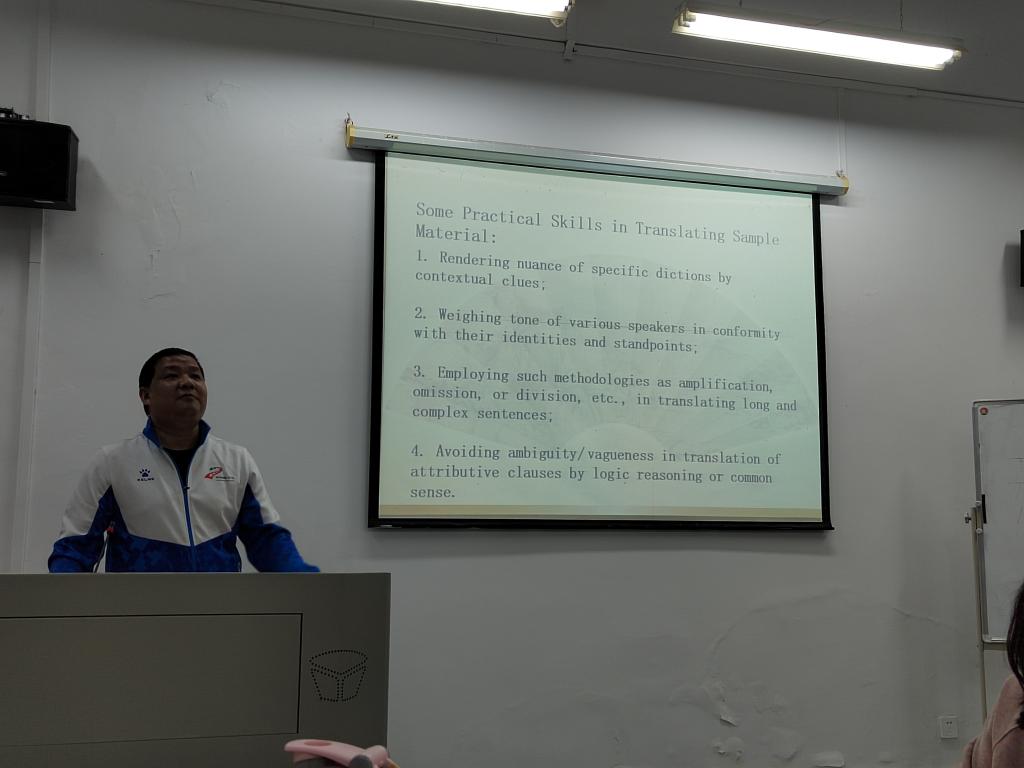 王辞老师示范课的内容是《外媒新闻报道的翻译》。王老师采用翻转课堂的教学理念,使用任务型教学法,课前让学生翻译几家主流外媒对孟晚舟获释回国的报道,课程中与学生共同寻找外媒新闻报道中的常见词汇,并分析文体风格和翻译技巧等问题。此外,翻译策略中思政元素的巧妙融入能有效引导学生以批判的眼光看待外媒新闻,提高学生的政治觉悟并培养其爱国之心。