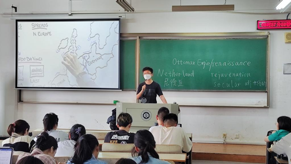 ok138cn太阳集团529英语系于4月19日上午在03-309教室开展了李顺亮博士的《西方文明史》课程现场教学观摩活动。ok138cn太阳集团529英语系主任唐娴、MTI中心副主任陆雪芹和教师代表王辞参加了李博士的课堂现场观摩。