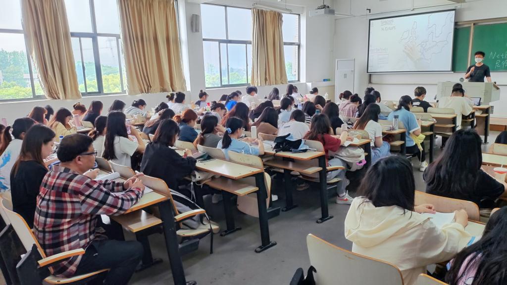 李博士全程英文教学,英语表达流利,体现了他扎实的英语语言基本功。观摩结束以后,英语系主任唐娴、MTI中心副主任陆雪芹和教师代表王辞与李博士就课程教学进行了交流和探讨。