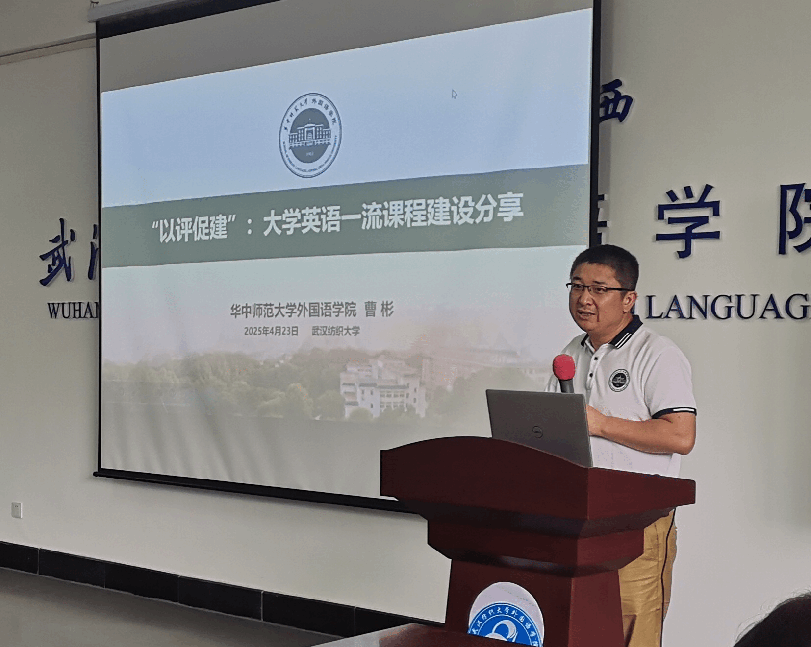 曹彬以“以评促教:大学英语一流课程建设分享”为题与大家分享。他首先概括介绍了华中师范大学ok138cn太阳集团529的专业设置和学生情况,之后展示了该校在大学英语教学中的创新教学和数项国家一流本科课程等傲人成绩,如《英语演讲艺术》《英语创意写作》《英美文学欣赏》。曹教授随后就华师大学英语一流课程的建设分享了许多宝贵经验,如“以赛促教”、培养优秀青年教学能手、建立三位一体教学模式等,高屋建瓴,让人受益匪浅。