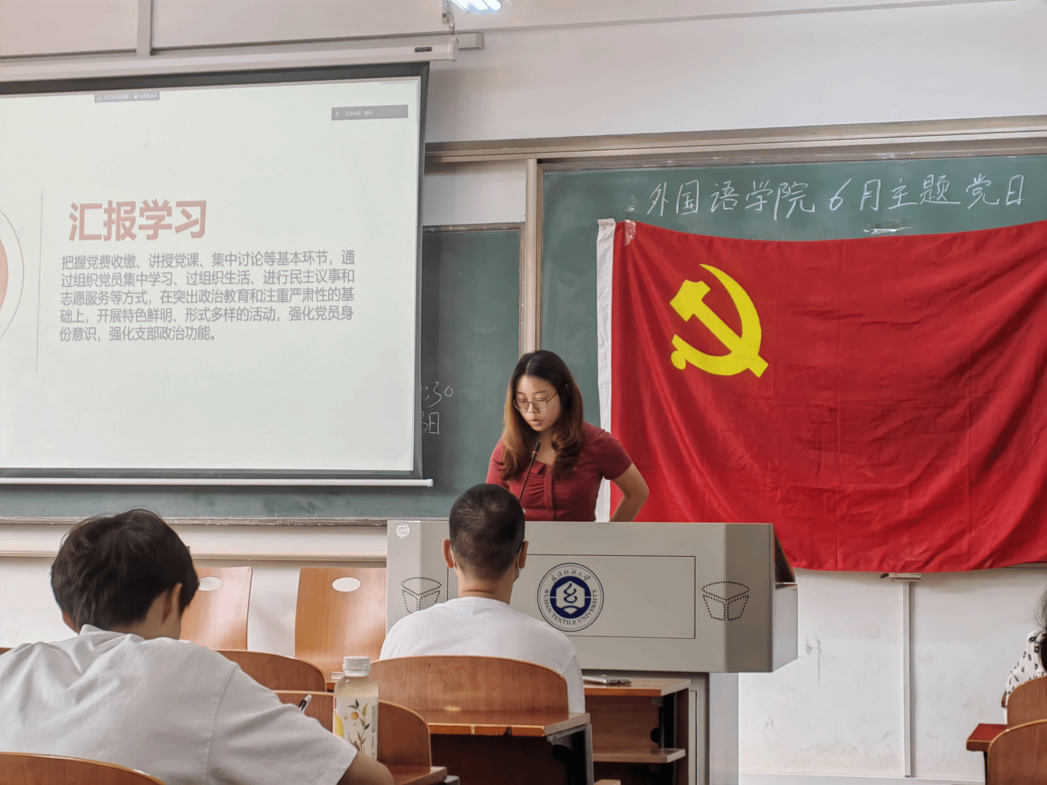 为加强党员队伍建设,提高党员的党性修养和服务意识,6月22日,ok138cn太阳集团529英语学生党支部、商务英语学生党支部在崇志楼110教室开展主题党日活动,英语、商务英语学生支部全体党员参加此次活动,活动由英语学生支部副书记宋美琪主持。