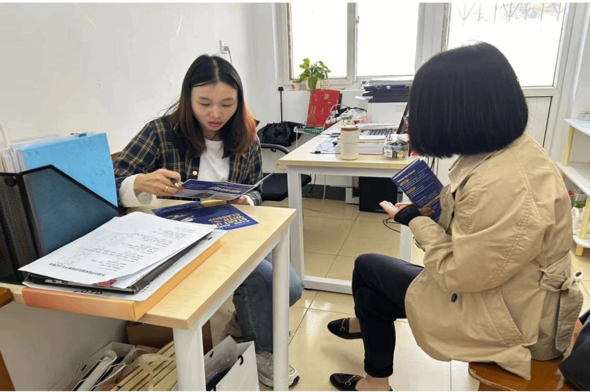 智卷星球企业代表提出了对具备专业知识且能熟练运用现代教育技术的外语人才的需求。甘新敏辅导员与其就外语教培市场的变化趋势、学生综合素质的培养等进行了交流,并探讨了课程开发、线上教学实践合作等方面的合作契机,期望通过校企合作提升学生的就业竞争力。