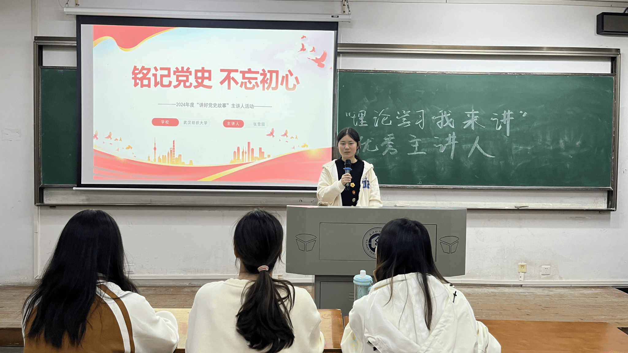 英语12402班的张雪园同学则带来了“铭记党史,不忘初心”的主题演讲。她带领大家重温了党史中的感人故事,深刻感悟了党的初心和使命。张雪园鼓励同学们从党史中汲取力量,坚定信念,紧跟党的步伐,砥砺前行,为实现中华民族的伟大复兴贡献自己的力量。