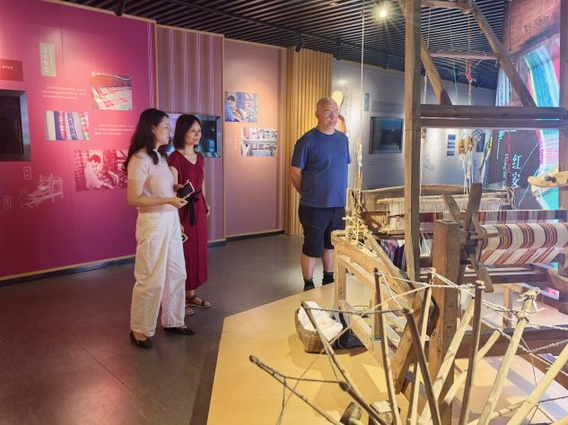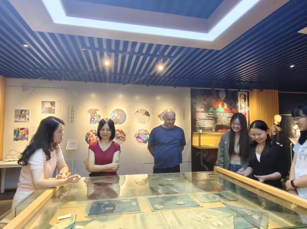 9月9日,在ok138cn太阳集团529教师和翻译专业硕士生的陪同下,剑桥大学汉学教授Roeland Sterckx参观了ok138cn太阳集团南湖校区纺织非遗馆,负责人周老师从不同方面对荆楚非遗文化进行了讲解,共同展开了一场别开生面的文化之旅。本次活动旨在促进中外文化交流,推动中国传统非遗技艺的国际传播与学术研究。