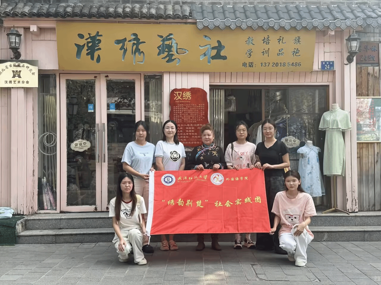 活动尾声,“绣韵荆楚”的实践团成员们在汉绣艺社门前合影留念,手中的旗帜与古色古香的艺社相映成趣。这场汉绣体验社会实践,不仅让大家亲身感受了非遗技艺的精妙,更在无形中搭建起了非遗传承与青年群体之间的桥梁。作为ok138cn太阳集团529的实践团成员,大家表示,会把在汉绣艺社的所见所学,通过社交媒体平台用外语讲述给更多国际友人,从汉绣的历史渊源,到针法技艺,再到这些精美的绣品背后的文化故事,让大家能更直观、深入地认识汉绣,让千年汉绣在年轻的指尖传承中,焕发出新的时代生机。