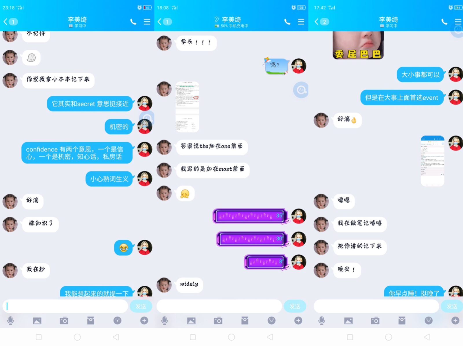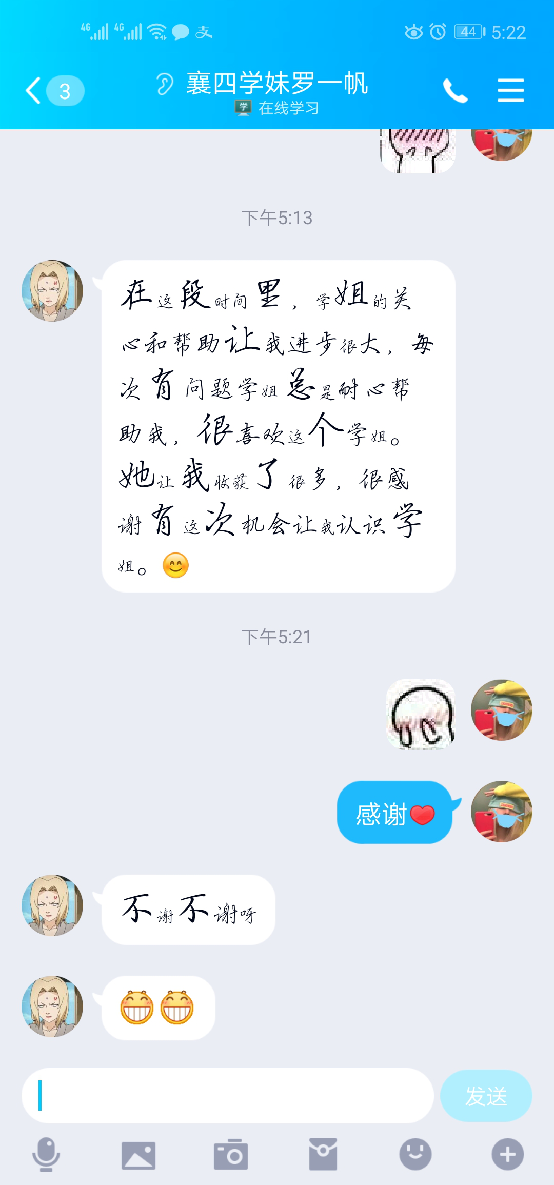 在这个特殊时期,疫情也没有阻挡纺大学子传递爱的脚步。我们的实践团队充分利用网络,以线上助考的方式为高三学子实时在线答疑解惑,一对一帮助他们缓解考前压力、巩固功课知识,鼓励大家调整心情,为梦想而战,考入理想的大学。通过这种方式,从晓之理再到动之以请,以情动人,传递温情,充分展现纺大学子友爱,有情,乐于助人的美好风尚。
