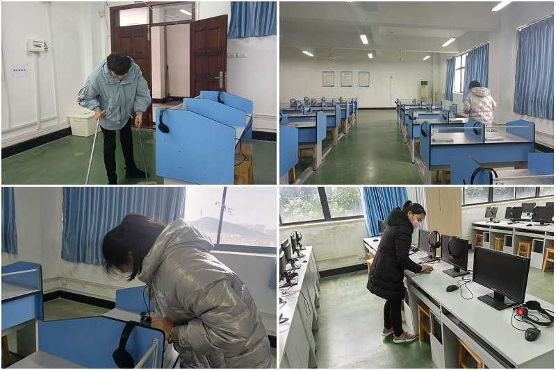崇文楼内,学生们3、4人为一组,采取一组承包一间的方式,对学院语音室、翻译实训室、自主学习室等8间教学场所进行了开学后第一次彻底清扫。通过此次活动,不仅清洁了卫生环境,维护了教学设施,保障了顺利开课,更是让学生在活动中领悟志愿服务精神,启发主人翁意识。