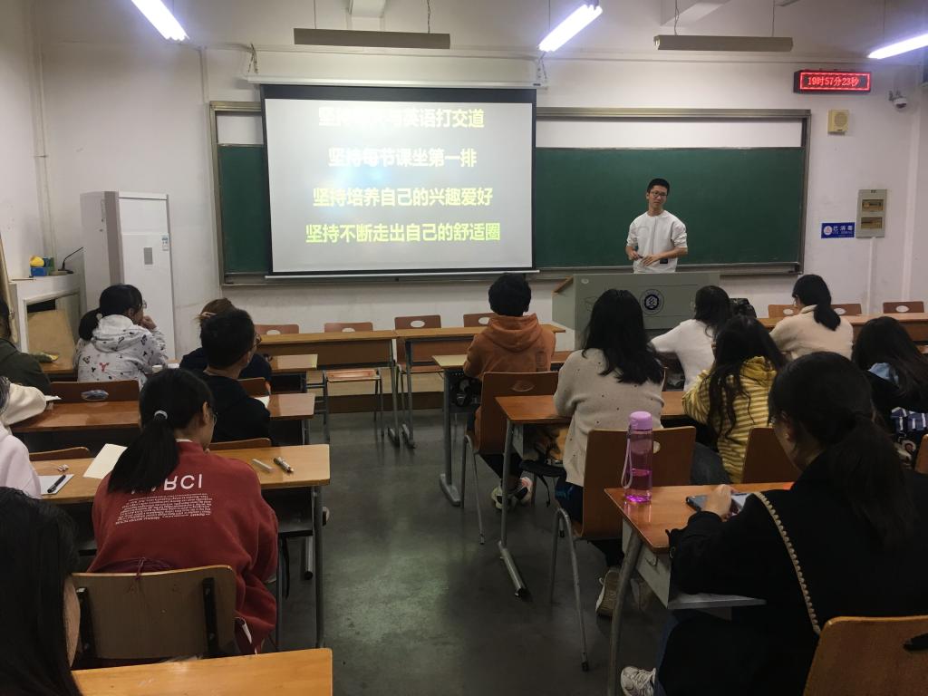 2021年10月18日,ok138cn太阳集团529在三号教学楼211教室举办优秀学生经验分享会。本次经验分享会特邀优秀学生杨思韬为大一新生传授经验,以帮助大一新生更快更好地适应大学生活,调整自我,从而在大学这方崭新的天地里勾画新的青春蓝图。