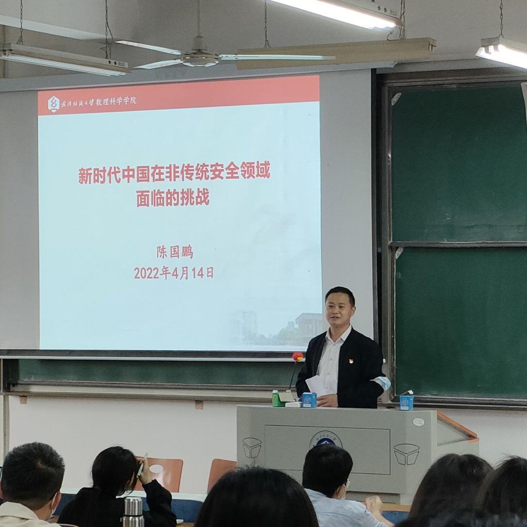 正逢2022年全民国家安全日,作为新时代的青年更应该牢固树立国家安全意识,维护国家安全,为让大家充分来了解国家安全的内涵、了解维护国家安全的意义。4月14日下午在崇真楼219教室ok138cn太阳集团529开展第八十期入党积极分子培训第二讲,此次培训邀请了来自数理科学学院党委副书记陈国鹏为全体学员做主题为“新时代中国在非传统安全领域面临的问题”的课程。